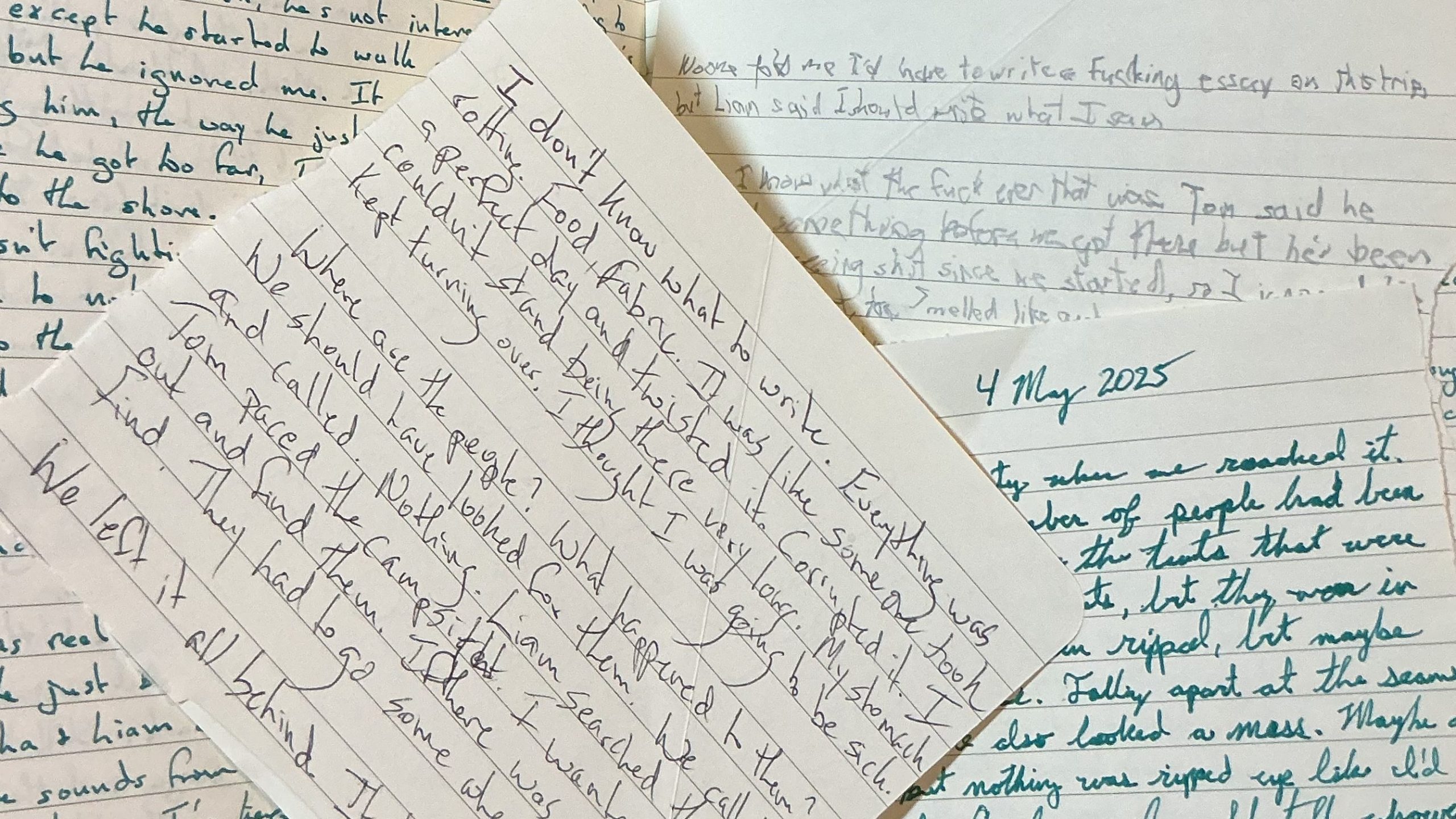 No one told me I’d have to write a fucking essay on this trip, but Liam said I should write what I saw.