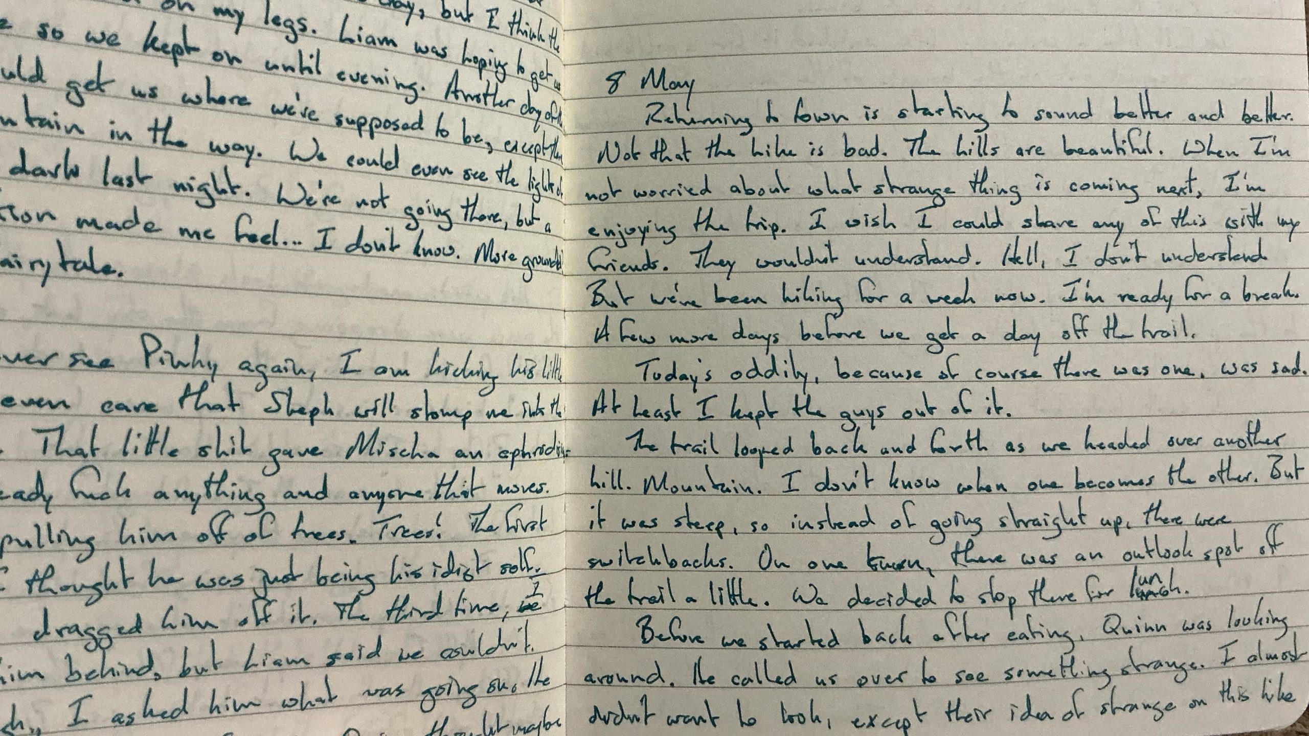 Returning to town is starting to sound better and better. Not that the hike is bad. The hills are beautiful. When I’m not worried about what strange thing is coming next, I’m enjoying the trip. I wish I could share any of this with my friends. They wouldn’t understand. Hell, I don’t understand. But we’ve been hiking for a week now. I’m ready for a break. A few more days before we get a day off the trail.